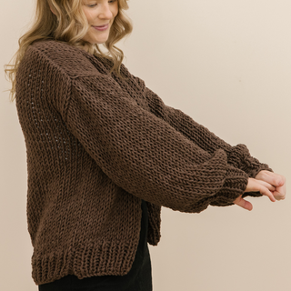 Most of our beginners finish their first kit in a weekend (or a few chill evenings on the couch). Our chunky yarn knits up super fast, so you’ll see progress in no time. Warning: it’s very addictive.